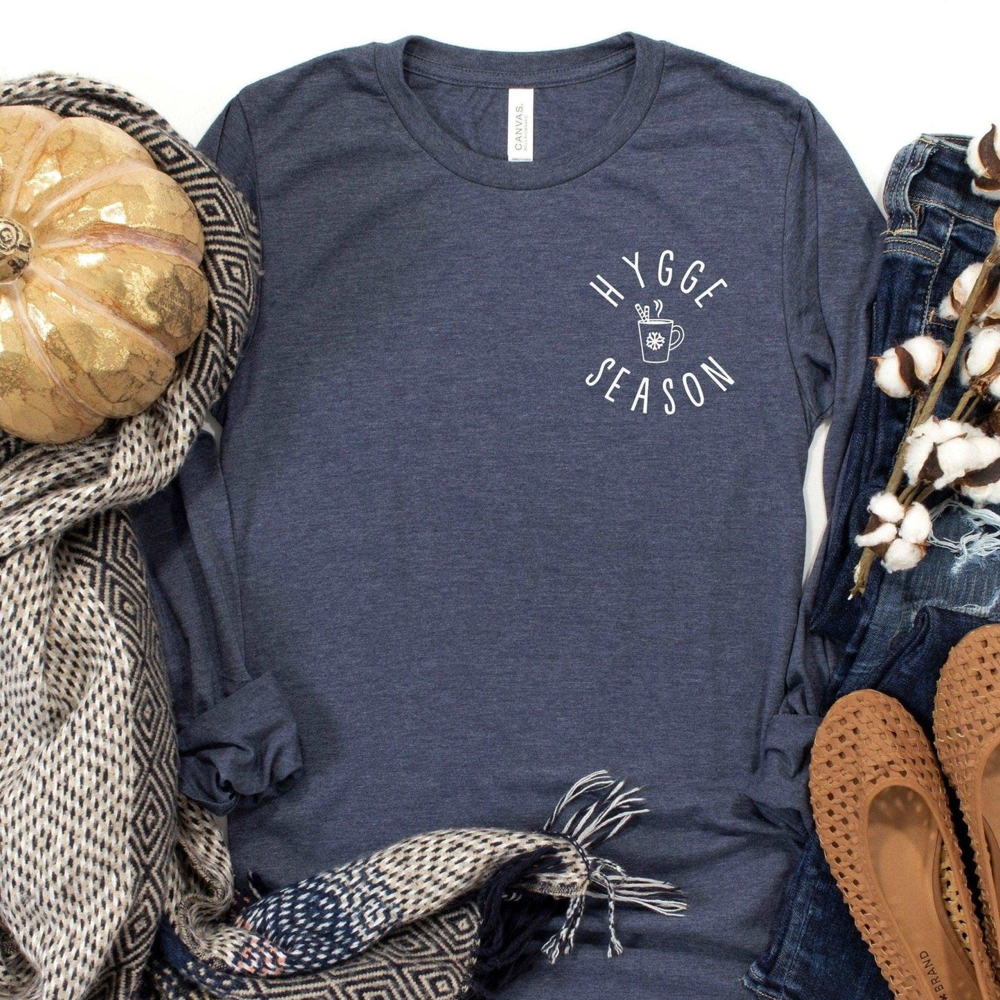 This Hygge Season long sleeve t shirt is a perfect to snuggle up in with a cup of hot cocoa.